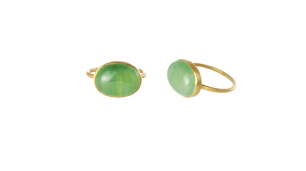 Bague en or mat 18k serti d’un beau beryl en cabochon.